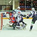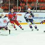 Первый период закончился со счетом 0:0, не смотря на жесткий прессинг красно-синих в конце тайма. За минуту до окончания периода Дмитрий Кугрышев попытался забросить в ворота шайбу. Не получилось – вратарь сыграл локтем.