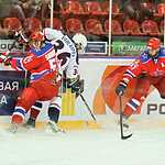 Третий период и через несколько минут на скакмейке штрафников сидит красно-синий Андрей Сергеев. Торпедо использует этот момент, атакует и забивает шайбу. 2-0. В голову закрадывается мысль, что ЦСКА уже вряд ли отыграется… не смотря на счет, Брагин уверен в своей команде и даже не берет тридцатисекундный перерыв, чтобы вразумить игроков. В игру вступают джокеры. Первую шайбу на счет команды записывает Александр Радулов. Через 4 минуты счет сравнивает Павел Дацюк. 2:0. Поклонники ликуют и встречают криками каждую атаку. Девушки на трибунах подпрыгивают на местах, когда игроки скапливаются у чьих-либо ворот. Игра продолжается: команды перемещаются от одних ворот к другим.