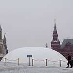 На Красной площади почему-то решили срочно устроить масштабную реставрацию мавзолея, огромный белый купол вызвал шквал домыслов конспирологического и мистического характеров – некоторые люди даже поговаривают, что Владимир Ильич разложился на липовый мед участвует в инфернальном ритуале, или что похуже, например, что площадь специально, как и, например, Триумфальную закрывают во избежании революции. Проходите граждане, не мешайте проходу других граждан.