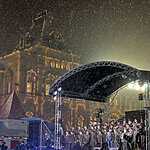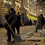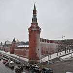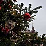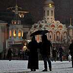 Между площадкой, отгороженной высоким глухим забором и катком на красной площади сделан узкий унылый проход. Периодически площадь закрывают под разными предлогами. Так что выжившие под ударами мокрого снега международные гости столицы вынуждены довольствоваться достопримечательностями окрестностей, не посетив саму главную площадь. Впрочем, огромная нарядная елка, установленная на Красной площади хорошо разбавляет мрачную атмосферу.