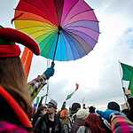Под пристальным вниманием полиции, в специально отведенном месте, было почему-то не так весело, как на Арбате на прошлых парадах. Сравните сегодняшнее мероприятие с парадом в 2012-м году.