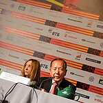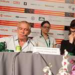 Сегодня в пресс-центре состоялась пресс-конференция жюри основного конкурса. Во встрече с журналистами, которую провел Петр Шепотинник, приняли участие – основатель и бессменный почетный президент МКФ в Пусане (Корея) Ким Дон-Хо; режиссер Урсула Майер; актеры Сергей Гармаш и Зураб Кишидзе, а также Председатель жюри, иранский режиссер Мохсен Махмальбаф.