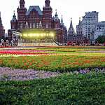 Любители настоящего отдыха на свежем воздухе могут посмаковать пирожные и кофе прямо у здания ГУМа, сидя на решетчатом стуле и рассматривая наиболее интересные фрагменты цветочной композиции. Для профессионалов отдыха на свежем воздухе с 20:00 предусмотрено музыкальное сопровождение. Представьте: легкие нотки цветов перемешиваются в голове с не менее легкими нотками известных музыкальных композиций, сыгранных в манере джаза – разве это не блаженство? Те, кто уже побывали на фестивале, скажут – нет, это не блаженство. Настоящее блаженство наступает с заходом солнца, когда яркие прожектора и сотни встроенных лампочек создают невероятные эффекты на цветочном полотне, заставляя белые цветы становиться синими, а потом зелеными… Единственным недостатком экспозиции на открытом воздухе является, как вы уже поняли, сам открытый воздух, а точнее, дождь, который может подпортить вам настроение. Но настоящим москвичам не привыкать, так ведь?