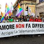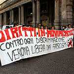 Гуляя по прекрасной и нежной Вероне, можно совершенно случайно наткнуться на шествие в защиту прав лиц с нетрадиционной сексуальной ориентацией. Одно из таких шествий прошло 21 сентября. Надо отдать должное европейским нравам – подобные акции здесь совершенно не похожи на те, что проходят в Москве. Даже присутствие полицейских больше похоже на ненапряжное сопровождение – местные стражи порядка просто наблюдали за обстановкой, совершенно не вмешиваясь в ход дела. Они не пытались никого арестовать, прогнать, они вообще никого не трогали, просто наблюдали.