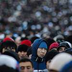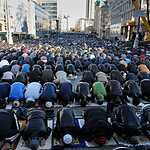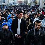 По данным полиции, общее число мусульман, участвовавших в молитве – 103 тысячи человек. Верующие начали собираться еще затемно. Заполнив окрестные улицы мусульмане расстелили коврики (или куски обоев) и совершили намаз, после обращения Муфтия, которое традиционно транслировалось через громкоговорители. Праздник Курбан-байрам знаменует окончание хаджа и считается основным праздником в Исламе. На Прошлогодний Курбан-байрам к Соборной мечети пришли около 150 тысяч мусульман.