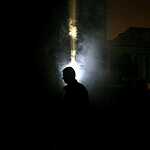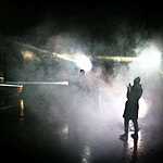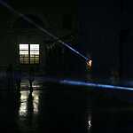 Во время представления посетители музея могли наблюдать, как из пробитых в стене здания отверстий вырывались пыль, пар, лучи света и различные звуки.