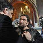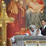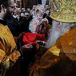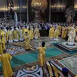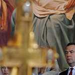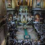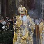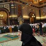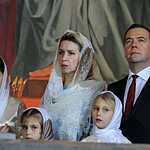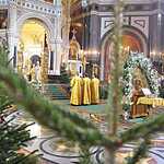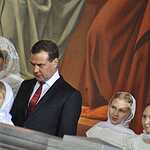 Патриарх Кирилл провел торжественное ночное рождественское богослужение в Храме Христа Спасителя. На службе присутствовал премьер Медведев со своей супругой.