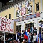 Во время митинга Сергей Кургинян рассказал собравшимся всю страшную правду о фашистах, захватывающих Украину, о Киеве, который в руинах, и прочий ужас, который несут бандеровцы. “В Москве майдану не бывать. Да или нет?!”, – разносились громогласные речи защитника россиян и украинцев над Театральной площадью.