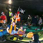 Путешествие по подземной речке — это экстрим. А экстрим требует серьезной подготовки и экипировки. Лодки, гидротексы, спасательные жилеты, каски, фонари. Свет — это вообще отдельная тема, света должно быть много, так как плыть нужно около 2-4 часов, на пути встречаются небольшие пороги, трубы поперек коллектора, водопады. Все это нужно видеть заранее, чтобы во-время принять меры безопасности. Каждый путешественник решает вопрос со светом как может, в прошлый раз была лодка с автомобильной фарой на носу, а в этом году изобрели специальную световую конструкцию.