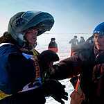 Но два часа прошли, гонщики завершили гонку и наступило время награждения победителей. Лучшим в гонках на оленьих упряжках стал Матвей Салиндер, которому вручили главный приз – снегоход «Буран» от главы г. Салехарда Ивана Кононенко.