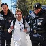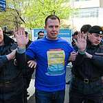 Днем 24 апреля Алексея Навального в сопровождении судебного пристава доставили в Замоскворецкий суд Москвы. Напомним, оппозиционера обвиняют в хищении им и его братом Олегом Навальным 27 миллионов рублей. Перед судом собралась небольшая группа активистов, которые поставили агитационный куб и начали раздавать газеты, несколько человек задержано.