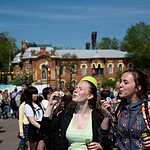 В воскресенье, 25 мая, в Иркутске уже в седьмой раз прошел День мыльных пузырей. На центральной набережной города и на площади около памятника Александру III были развернуты более 20 интерактивных площадок, прошел городской чемпионат по игре “Пустяки”, и на праздничной сцене выступили популярные иркутские коллективы «Самолет денег», «Чайковский и трубы мира» и «Меланж», и даже гости из Москвы группа «Ливия».