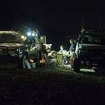 Из Москвы вышли на трех автомобилях: Toyota Land Cruiser 105, Toyota Hilux и УАЗ Патриот. Первым шел я на пикапе, за мной в нескольких десятках километров Илья Барсуков на “стопятке”. Догонявший нас экипаж Сергея Зуева на Патрике получил координаты стоянки на берегу реки уже де-факто и взял курс на ночевку чисто по-джиперски – прямо. В итоге, где-то за рекой на горе появились фары УАЗа, получившего прозвище «Железяка» на Северном маршруте, а в рации раздались удивленные голоса: «А где тут брод?». Почему-то Сереге в голову не пришло, что брода тут нет, а заезжать надо было там, где есть нормальный мост. Джиперы, что с них взять…