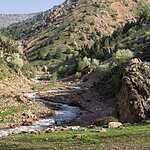 Только после Ангрена мы добрались наконец до гор, что было конечной целью нашего путешествия по Узбекистану. Точка базового лагеря была на искусственном плато, построенном над уведенной в трубы рекой. Все эти манипуляции были сделаны еще во времена СССР, когда недалеко отсюда добывали в шахтах уран. Всех интересовал только один вопрос, где достать счетчик Гейгера.