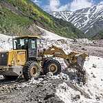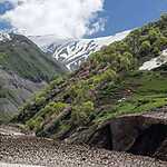 Пока же, подпитываемые первыми впечатлениями и желанием изучить Киргизию в будущем более подробно, мы ночуем на высоком берегу реки, достаем из оврага собаку с помощью лебедки и утыкаемся в закрытый лавиной перевал. Что-то подобное мы уже проходили на Трансфэгерашском шоссе, и вот случай повторился один в один. Работающие на расчистке перевала трактористы сообщили, что раньше чем через три недели снег не уберут и ждать нам нечего. Возвращаемся и снова объезд.