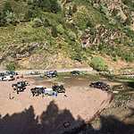 Руководитель экспедиции Женя Шаталов собирает участников для обсуждения вариантов дальнейших действий. План “Б” предполагает объезд Аральского моря до Шымкента и заход в Узбекистан с другой стороны. Это формат ралли-рейда и потерянные трое суток, ровно столько же, сколько возможно предстояло простоять на границе. Решились на забег бешеных повозок и 15 экипажей попылили по степным грунтовкам в сторону первой ночевки. Это был единственный раз, когда все экипажи двигались совместно. В дальнейшем получив “утренние” координаты экипажи уходили устоявшимися группами.