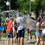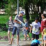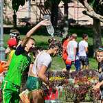 Молодые люди, рожденные под разными знаками зодиака, превратились в водолеев. Они «обстреливали» друг друга из водных пистолетов, бутылок с водой, и даже обливали из ведер. На площади находятся несколько фонтанов, так что у горожан, которые пришли обливать и обливаться, недостатка в воде не было. Разумеется спасение от жары можно найти и другими способами, но куда более интересно развлечься вот таким образом.