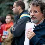 У здания посольства Украины в Москве состоялся пикет фотографов и журналистов в поддержку пропавшего под Донецком фотокорреспондента Андрея Стенина. Он не выходил на связь с 5 августа. Источники сообщали, что он мог быть задержан украинскими силовиками, однако Киев этого не подтверждал. МВД Украины 11 августа приняло заявление об исчезновении журналиста. На следующий день украинские власти впервые заявили, что им известна судьба Стенина. Советник МВД Украины Антон Геращенко сообщил в интервью, что фотокорреспондент арестован украинскими спецслужбами и подозревается в “пособничестве террористам”. Позже Геращенко сказал, что он только предполагал о задержании Стенина, но точной информации об этом нет.