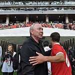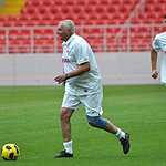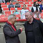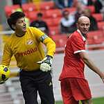 Трибуны уже повидали не одну восторженную делегацию. Путин недавно приезжал, работу принимал. Но какое настоящее открытие без футбольного матча. А какой может быть матч-открытия без спартаковских ветеранов, о многих из которых, принесших славу и почет любимому красно-белому клубу можно сказать просто: «Дожили!» Да они так и говорили, что не верится, что дожили до такого праздника – появления своего спартаковского стадиона. По такому случаю собралось потрясающее созвездие славных игроков прошлого, давнего и не очень, чтобы скатать товарняк среди своих – красных и белых. Или, как это событие назвали официально: Матч всех звезд ФК “Спартак Москва”. Я думаю, будет справедливо привести составы полностью: