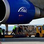 Это уже второй из четырех грузовых рейсов с коровами голштинской породы. Первый прилетел во Владивосток неделю назад. Всего в партии будет 660 голов скота. Около 90 тонн живого пятнистого и мычащего груза прибыло на борту двухпалубного лайнера Boeing 747-400F авиакомпании Air Bridge Cargo. В каждом из 33 деревянных ящиков, так называемых клеток, по пять копытных. Сперва их выгружают на спецтехнику, отвозят в грузовой терминал. Оттуда клетки помещаются в пять длинномеров. Все машины поедут в Ханкайский район, в приморский животноводческий комплекс “ГринАгро”.