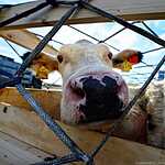 Ветеринар Юрий Кунак сопровождал живой груз в время полета. «Коровы доехали в отличном состоянии, — объясняет он. — Я каждый час проверял температуру воздуха — при перелете она должна быть 12-15 градусов. Животные ведут себя хорошо. А вот на морском судне бывают проблемы. Да, сейчас они испытали небольшой стресс, но они молодые — перенесут. Все коровы беременны — у них три-пять месяцев стельности. На таких сроках как раз можно перевозить животных».