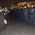 Мнения по поводу того, надо ли выходить еще раз, тогда разделились. Кто-то планировал выйти на площадь еще раз, кто-то говорил, что нет смысла. В итоге, акция на Манежной площади сегодня состоялась, но имела совершенно иной характер, чем было запланировано. Сторонников Навального было крайне мало, пришли люди, поддерживающие Украину, казаки, а так же много так называемых антимайдановцев с георгиевскими ленточками. Все это вылилось в какую-то бессмысленную суматоху на Манежной площади. На последние акции оппозиции стали приходить люди из движения НОД. Они довольно активные, кричат «Майдан не пройдет!» и другие подобные лозунги.