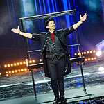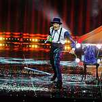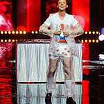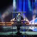 Что это было – просто ловкость рук? или наше будущее, когда цифровая информация перестанет носить только двоичный код и начнет переходить в нашу жизнь настоящими предметами? Немец запомнился искренней открытой улыбкой и ярким сочетанием цветов для своего номера. Рыжий и синий цвета в одежде повторяли цвета инструментов выступления. Синий – цвет экрана, а рыжий – цвета красок и бабочек.