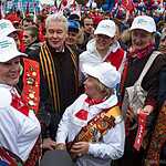 1 мая в Москве прошло множество праздничных мероприятий, посвящённых Дню труда. Самое массовое шествие было организовано независимыми профсоюзами России и прошло на Красной площади. Несмотря на плохую погоду в шествии приняли участие более 100 тысяч человек – представители профсоюзов Москвы и Подмосковья, а также участники различных политических движений.