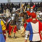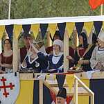 Рядом с ристалищем был разбит средневековый военный лагерь, в котором все желающие могли пострелять из лука, сразиться на мечах, освоить гончарное ремесло, пострелять из катапульты и поиграть в средневековые игры.