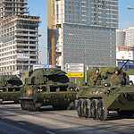 Вся военная техника, участвующая в Параде, располагается на Ходынском поле, отсюда ровно в 6 утра колонны начинают движение в сторону Тверской улицы.