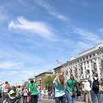 Вырвавшись на стихийно перекрытый Ленинградский проспект (организованное перекрытие сделано только на той полосе, по которой идёт техника, а остальные люди захватили сами. Всё равно, машинам тут неоткуда взяться), я обнаружил праздник. Тут люди и на роликах, и на самокатах катались, и на велосипедах. Гуляли, загорали на разделительных газонах. В общем, самое позитивное место из всех, в которых сегодня довелось побывать.
