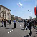 Сразу после окончания авиационной части парада, по проспекту пошли танки. Экипажи были рады успешному завершению Парада, ну а люди радовались тому, что и им перепало немного праздника.