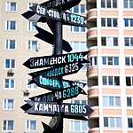 Памятник представляет собой силуэт солдата с автоматом в руке, стоящего у верстового столба, на котором находятся стрелки указывающие направления и расстояния до различных российский и зарубежных городов.