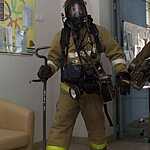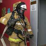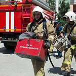 После эвакуации в здании осталось 3 человека персонала, которых предстояло спасти пожарным-спасателям газодымозащитной службы – такова легенда пожарно-тактического учения.