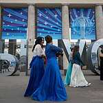 По случаю окончанию учебного года, в Парке Горького собрались несколько тысяч выпускников московских школ.