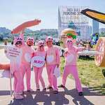 Анатолий, команда «Котики на самолетике», которая зажигала под перепевку Rammstein в очаровательных розовых хвостатых костюмах завоевала симпатии многих зрителей. Мы спросили их о том, что же может заставить серьезных мужчин из Вологда надеть добровольно розовые костюмы и прыгнуть вниз с «Сосисколета»: «Мы изначально рассчитывали на победу. Котиков се любят, все обожают, поэтому вопрос с идеей решился быстро. Мы розовые, милые. Взять живых котов? Хотели загрузить фуру с котятами, но Гринпис бы не одобрил. Все в нашей команде беспрекословно любят котят. Нас поддерживает целая группа поддержки, которая приехала вместе с нами из родного города. Мои родители активно болеют, переживают, спрашивают, где можно посмотреть прямую трансляцию. Мы участвует не первый раз и с каждым годом растет уровень организации. В этом году шикарная погода. Нам очень понравилась команда пчелок и ребята на самоваре из Тулы. Какие ощущения во время полета? На самом деле кажется, что вода очень далеко и ты летишь-летишь-летишь… Когда поднимаешься и смотришь со сцены на людей, приходит адреналин и ты просто..прыгаешь!»