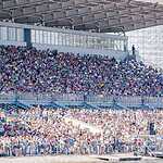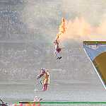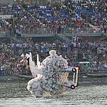 Приятно, что столичные жители не испугались жары (в Москву наконец-то пришло долгожданное лето) и солнца, и пришли в большом количестве на Гребной Канал: все трибуны и лужайки были полны. Люди сидели даже на крышах некоторых зданий, беспечно свесив ноги. Организаторы мероприятия сделали все, чтобы каждому было удобно: был фуд-корт, места общественного пользования, детская зона. Но самое интересное творилось около главного понтона. И никакое жаркое солнце (за что наверняка многие поплатились на следующий день) не могло оторвать зрителей от самого главного зрелища.