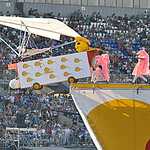 Алиса – очаровательная девушка-блондинка, которая стояла около аппарата мечты – большой розовой полосатой конфеты Candyboom: «Задумка нашего аппарата в том, что все мы когда-то были детьми, но забыли об этом. У нас конфета с сюрпризом: мы хотим подарить всем вкус детства. Вы все увидите на рампе. Нам хотелось сделать что-то милое. Почему решили принять участие? В Питере мы участвовали три раза в подобной теме: спускали с горы, теперь дождались чего-то более глобального. Представляете, как был счастлив проводник нашего вагона, когда увидел наш самолет? (смеется). Мы – за эмоции, за драйв. Наш девиз: «Чтоб не слиплось!».