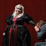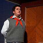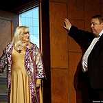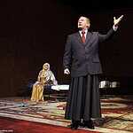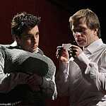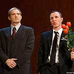 Второй акт – о любви. Любовных историй в спектакле насколько, но история Королевы Ирины Петровны и мальчика Джастина Бибера – «игра без правил», карнавал, театральное хулиганство высшей сценической пробы. Бекенгем-Павел Табаков юн, Королева – стара, но в мире всеобщего помешательства их чувства никого не удивляют. Муж Королевы, Король дядя Саша (Александр Семчев) принимает чувства жены с пониманием. Восторги от нового «открытия» Богомолова вполне понятны – прима театра Олега Ефремова Ирина Мирошниченко засверкала в «Мушкетерах» с прежней силой. Но спектакль и про театр, про то, как провинциальный мальчик не попал в артисты, про то, что у каждого персонажа – своя маска, про то, как трудно сменить в театре (и в жизни тоже) амплуа. Если ты Карлсон, то и оставайся Карлсоном, даже сняв пропеллер. А если звезда патриотического порно, останешься звездой навеки, чтобы с тобой ни происходило. Кстати, один из самых забавных эпизодов – когда Артаньян спасает Констанцию от рук насильников-актеров (по роли в порнофильме девушка кричала о помощи).