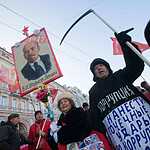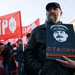 В колонне митингующих было много портретов Ленина, несколько человек в руках несли и портреты Сталина, а толпа один раз проскандировала: “Ура главнокомандующему Сталину!”, кричали так же: “Наша родина СССР!” ,”Сказал же Ленин ясно: Россия будет красной!”, пели советские песни.