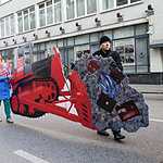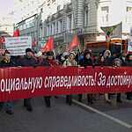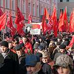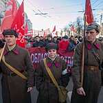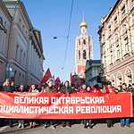 Около пяти тысяч коммунистов вышли на марш, посвященный 98-й годовщине Октябрьской революции.