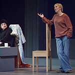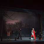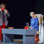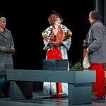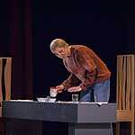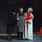 Может показаться, что на сцене присутствует специальное нечеткое разграничение задника. Тогда разговоры дома о живых смешиваются с разговорами о мертвых на кладбище. Декорации это или настоящая картина мира?