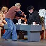 Что думают о смысле спектакля режиссер и актерский состав? – Смех сквозь слезы и слезы сквозь смех. Солнце в дождь. А сколько мы сами еще продержимся? Улыбайтесь, господа! Улыбайтесь!