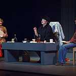 Странная пьеса. Название спектакля «Девичник над вечным покоем» уже предполагает печальное развитие событий. Что такое «Девичник над вечным покоем»? Авантюрная трагикомедия рассказывает о трех женщинах, которые уже несколько лет подряд собираются вместе на кладбище, на могилах своих мужей. Встречаются, чтобы поговорить сначала с мужьями, после о мужьях. Потом друг с другом о смерти и жизни, словно проверяя – живы ли мы сами? Держимся ли еще?