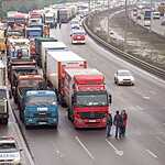 С другими водителями складывались подобные, но в разы более короткие и менее информативные диалоги. Все говорили, что никакая это не забастовка, что едут по маршруту, что просто ДПС перекрывают дорогу. На вопрос «почему только грузовых тормозят?» – ответили, что так всегда и происходит: сначала тормозят грузовых, а потом, ближе к «времени Ч» останавливают всех. В итоге останавливать стали в 12 часов дня, примерно с 15:00 перекрыли все ряды и не пропускали даже легковой транспорт, а в 15:50 открыли движение.
