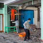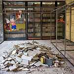 Помимо стройки, идет ремонт санаториев. В некоторых есть и сейчас отдыхающие. Например, там, где дворец Дюльбер. На территории большой парк, но посмотреть мне его не удалось — охранник попросил за вход 100 рублей. Таблички с ценой или хотя бы записью, что вход платный, нет, но без оплаты на территорию не пускают. Принципиально не стала платить. А вот на территории санатория Ясная поляна идет капитальный ремонт. Полностью разбиты три этажа, на котором раньше были библиотека, столовая и кинотеатр. Работы идут полным ходом, до сезона должны успеть сделать евровариант. В новом сезоне Крым все же ждет наплыва отдыхающих. Около входа в ремонтируемое здание кучи мусора, рядом с одной на земле я увидела валяющиеся негативы. Строитель ответил, что их очень много на складе, целая коробка, и их скорее всего выкинут. Я попросила отдать их мне. Но пришел прораб и сказал, что нельзя.