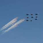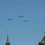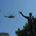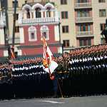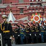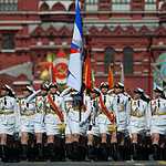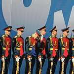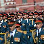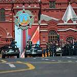 Затем парад достойно продолжила воздушная техника – в небе над Кремлем пронеслись боевые вертолеты «Аллигаторы» — КА-52 и «Ночные охотники» – МИ-28. Следом за ними пролетели бомбардировщики — стратегические ТУ-160, ТУ-95МС, тактические СУ-24 и СУ-34, истребители Миг-31 и Миг-27. Разумеется, не обошлось без самых известных российских пилотажных групп «Русские витязи» и «Стрижи». Следовавшие последними штурмовики превратили небо столицы в гигантский триколор.
