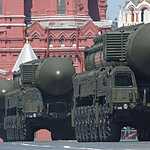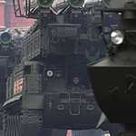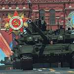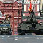 За пешими колоннами следовала тяжелая техника — легкие вездеходы, бронетранспортеры, танки, зенитно-ракетные комплексы – всего более ста единиц боевых машин. Они прошли по брусчатке главной площади страны в порядке возрастания боевой мощности. Среди колонн танков были новейшие «Арматы», которые вскоре встанут на вооружение. Завершили парад сухопутной техники мощнейшие машины, несущие на себе межконтинентальные баллистические ракеты «Ярс».