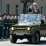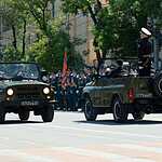 Астраханцы и гости города смогли увидеть боевую технику морской пехоты – колёсные бронетранспортёры, автомобильные тягачи УРАЛ и КАМАЗ со 120 мм артиллерийскими орудиями 2Б-16 «Нона» и легендарными пушками времен Великой Отечественной войны – 76 мм противотанковыми орудиями ЗИС-3.