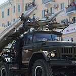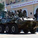 Также в праздничной колонне прошли бронетранспортёры морской пехоты БТР-80, пусковые установки зенитно-ракетного комплекса С-300, самоходный зенитный ракетно-пушечный комплекс наземного базирования Панцирь – С, ракеты-мишени «Стриж-3» и «Пищаль-Б», корабельные ракеты «Термит».